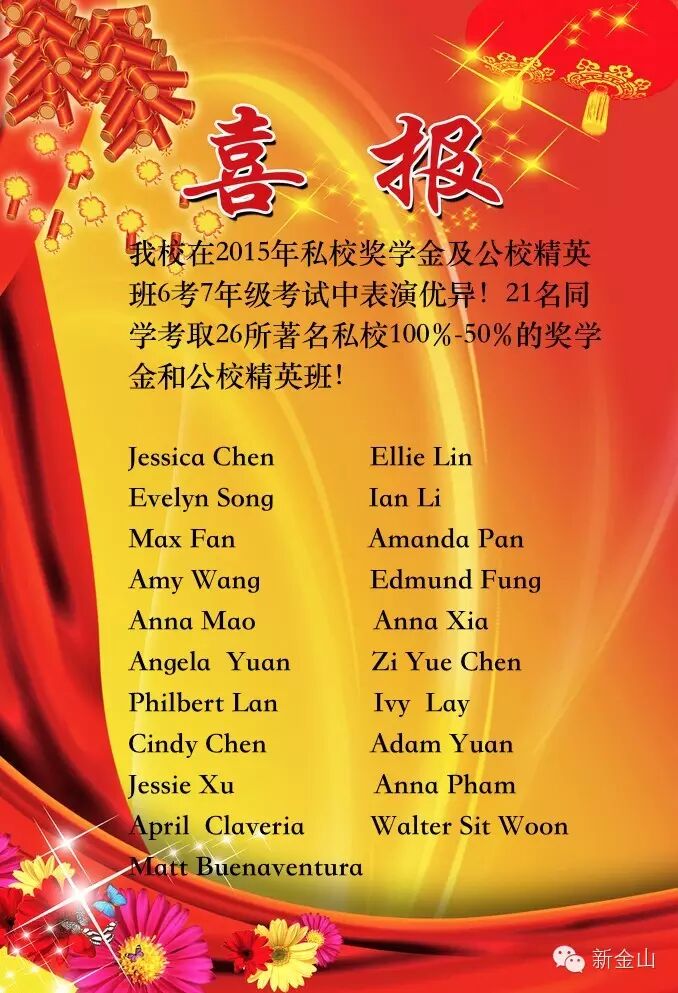 我校学生在2015年私校奖学金以及精英公校考试中,获得优异成绩!