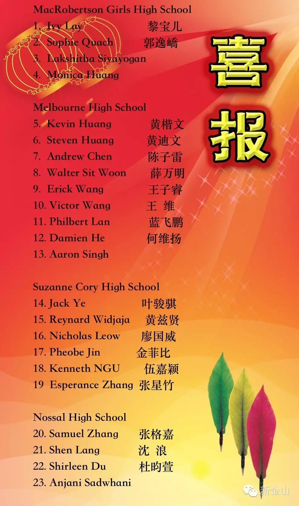 23名同学考取Melbourne High School, MacRobertson Girls High School,
